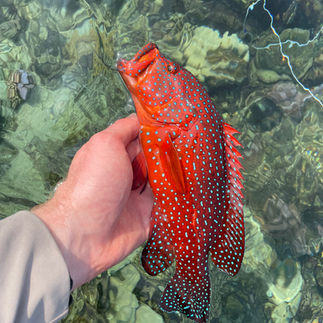 This day sums up the incredible diversity of species while fly fishing in Djibouti. On one flat on a single tidal swing, we hook: Triggerfish, GT, Grouper, Napoleon Wrasse, various smaller Trevally, all the reef fish, and both get shots at Permit. It is a dizzying amount of species. Now landing these species is always another story. They know how to find the rock and coral quickly!